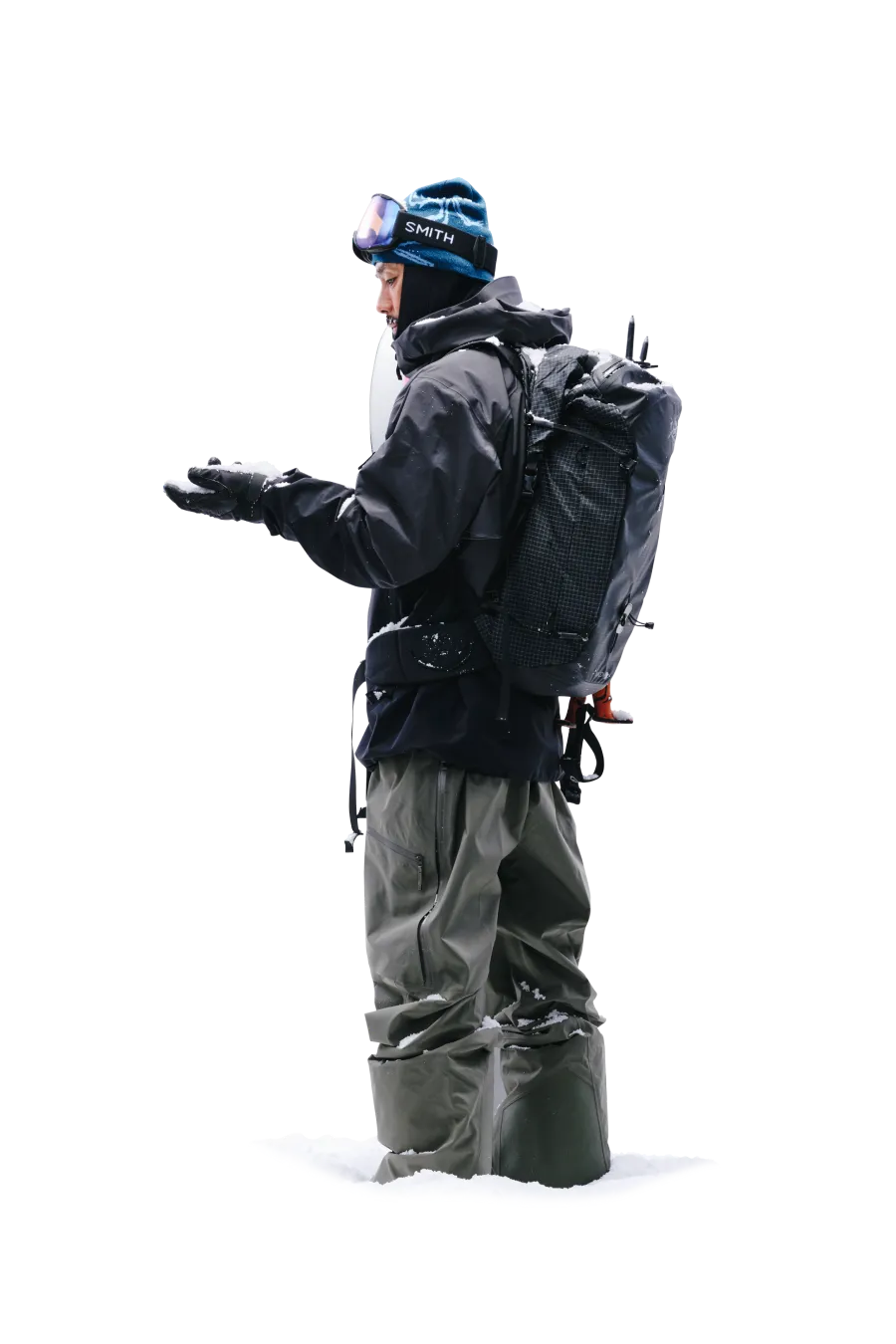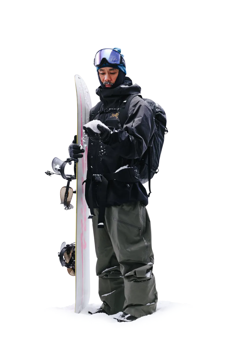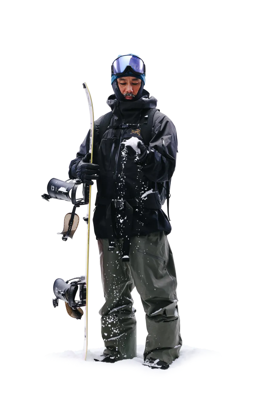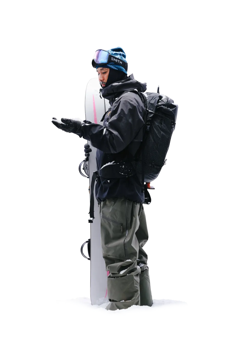 軽量で​暖かく、​防風性も​備える​ベンタ グローブは​ウィンタースポーツの​必携アイテム。​自身は​年齢を​重ねてから、​スノーボードを​背負うのではなく​スプリットボードで​ゆっくり登る​楽しさを​覚えたと​いう。