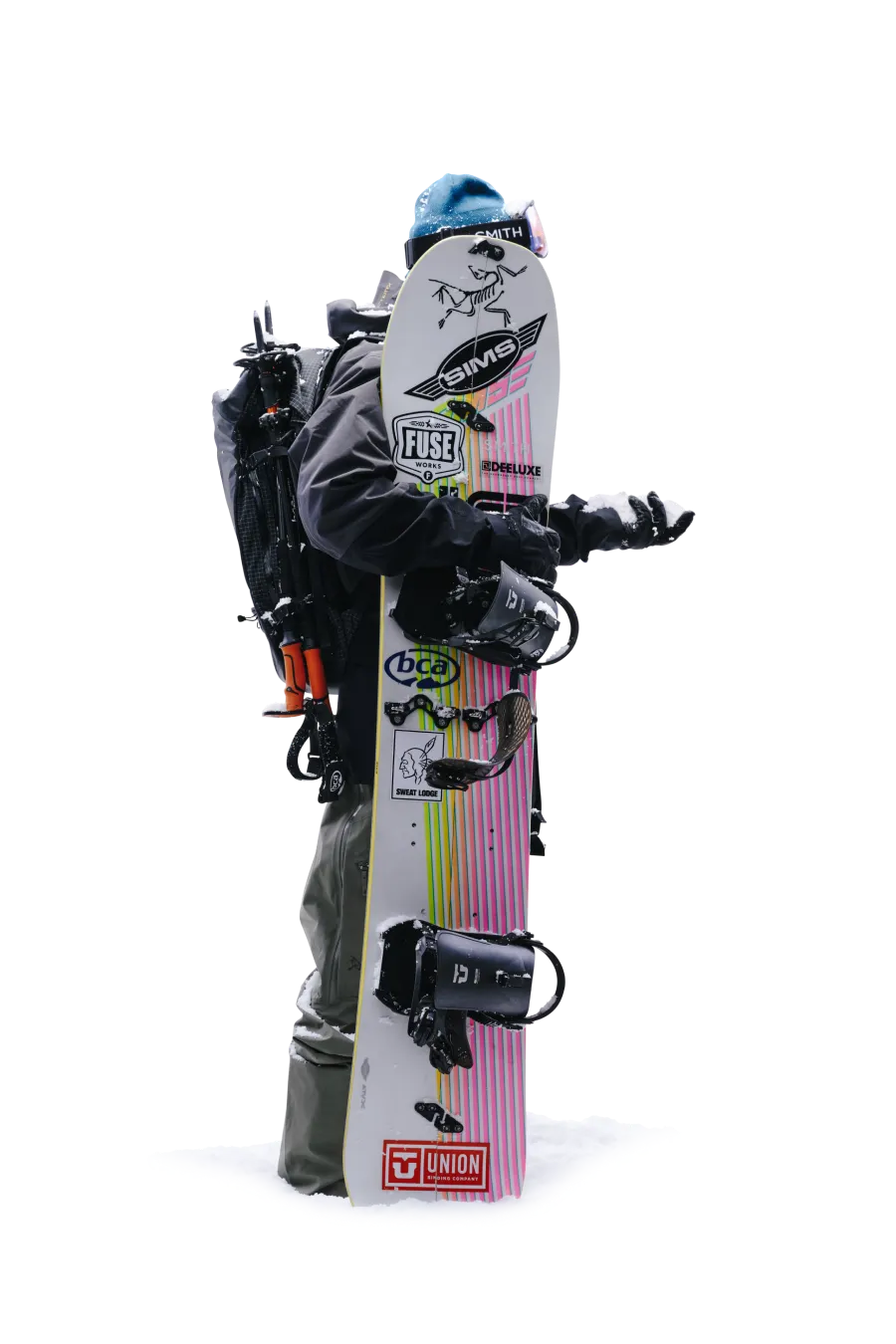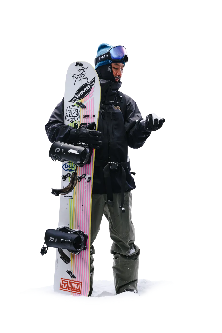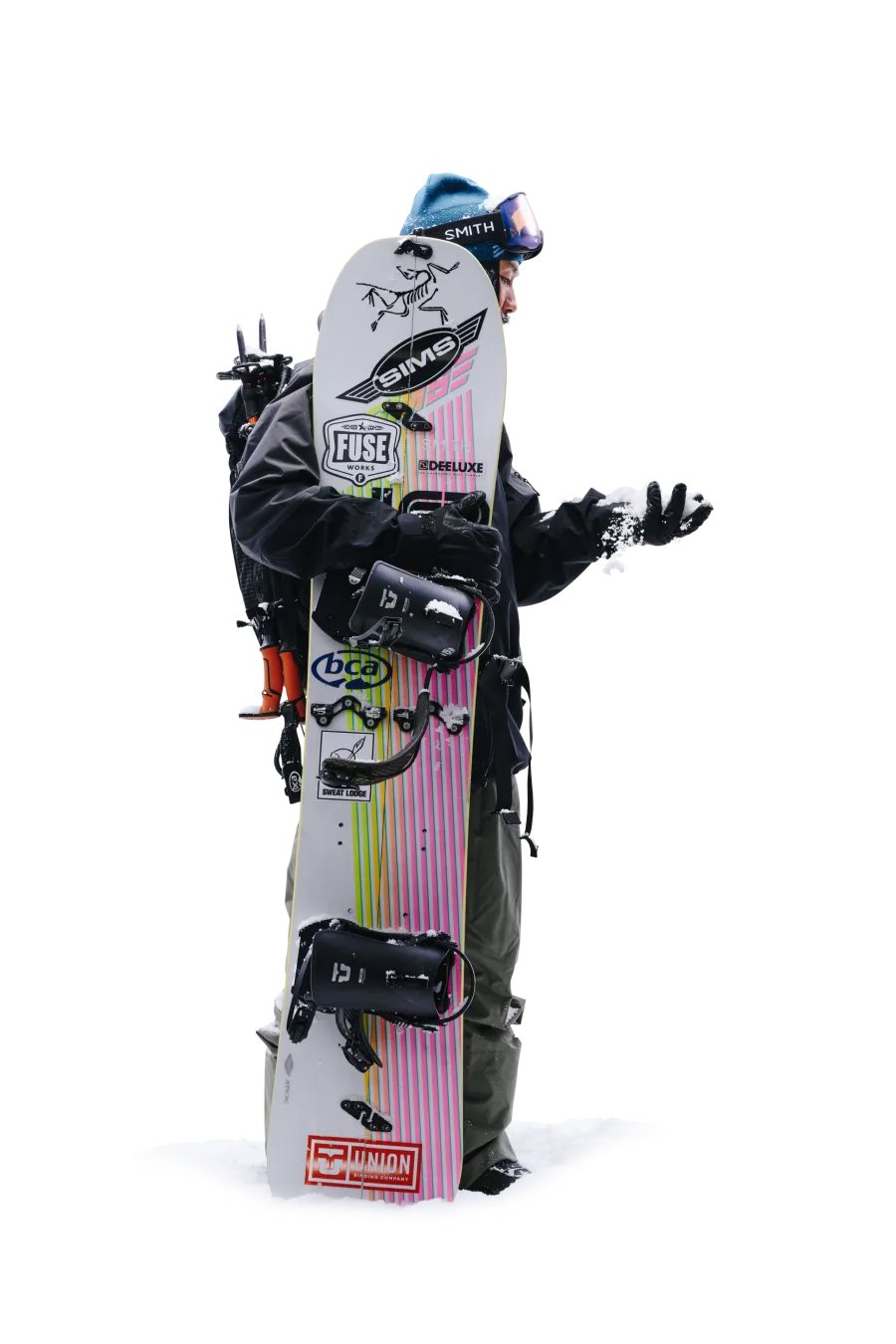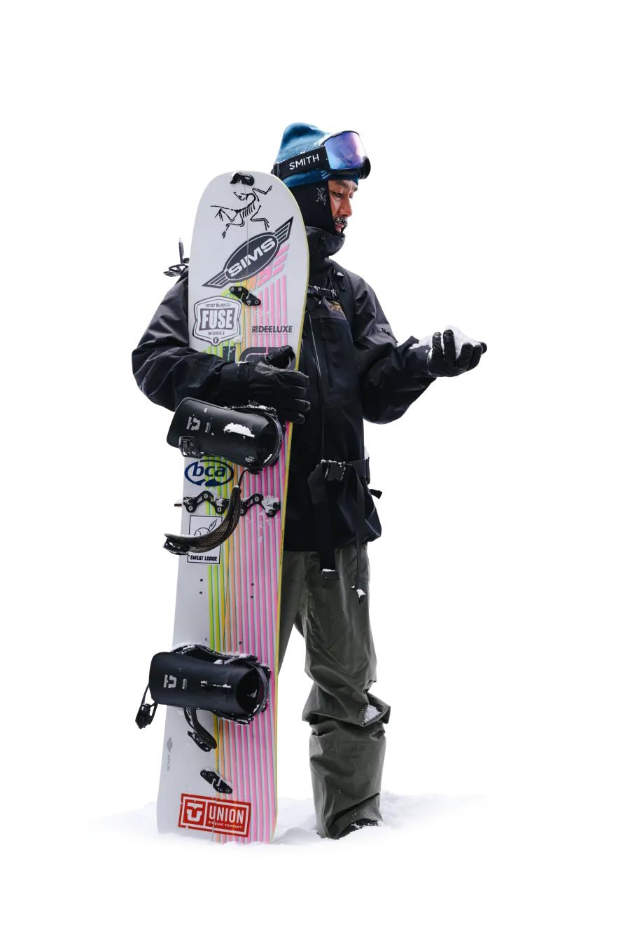 軽量で​暖かく、​防風性も​備える​ベンタ グローブは​ウィンタースポーツの​必携アイテム。​自身は​年齢を​重ねてから、​スノーボードを​背負うのではなく​スプリットボードで​ゆっくり登る​楽しさを​覚えたと​いう。