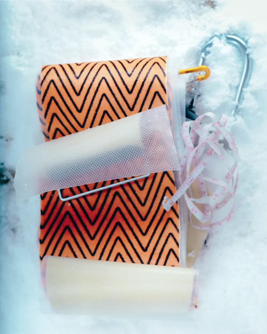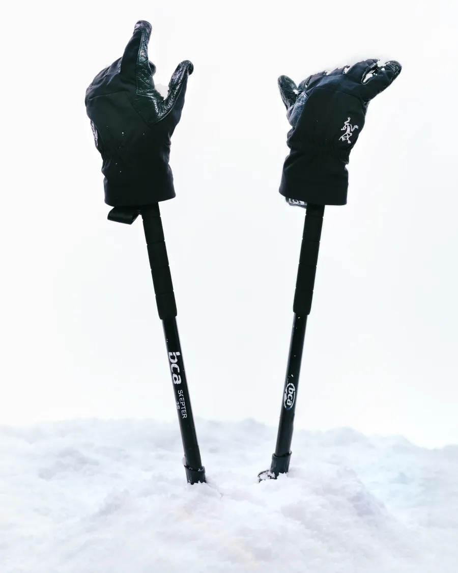 軽量で​暖かく、​防風性も​備える​ベンタ グローブは​ウィンタースポーツの​必携アイテム。​自身は​年齢を​重ねてから、​スノーボードを​背負うのではなく​スプリットボードで​ゆっくり登る​楽しさを​覚えたと​いう。